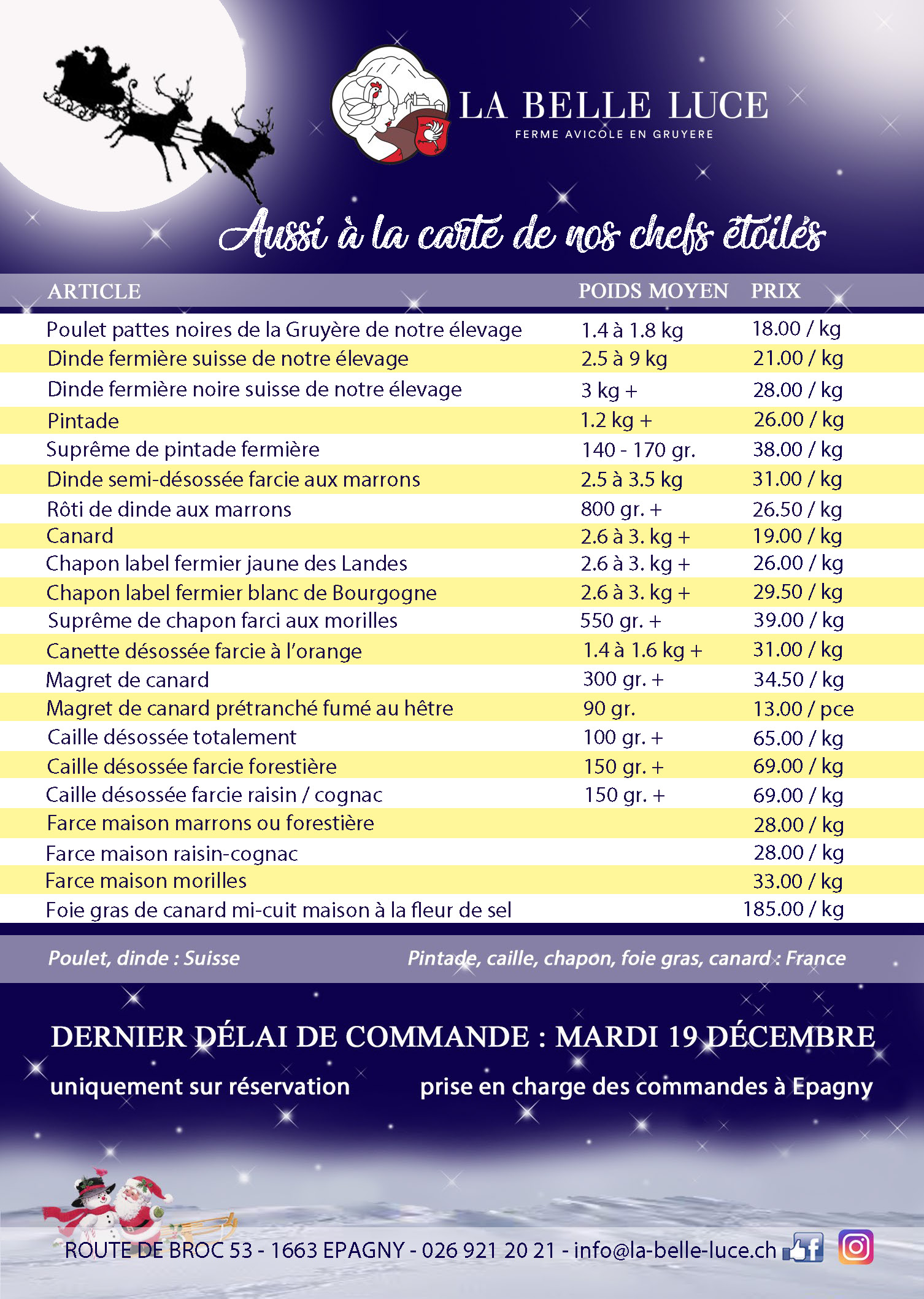 Un menu de fêtes avec les produits de la ferme avicole La Belle Luce à Epagny (FR)
