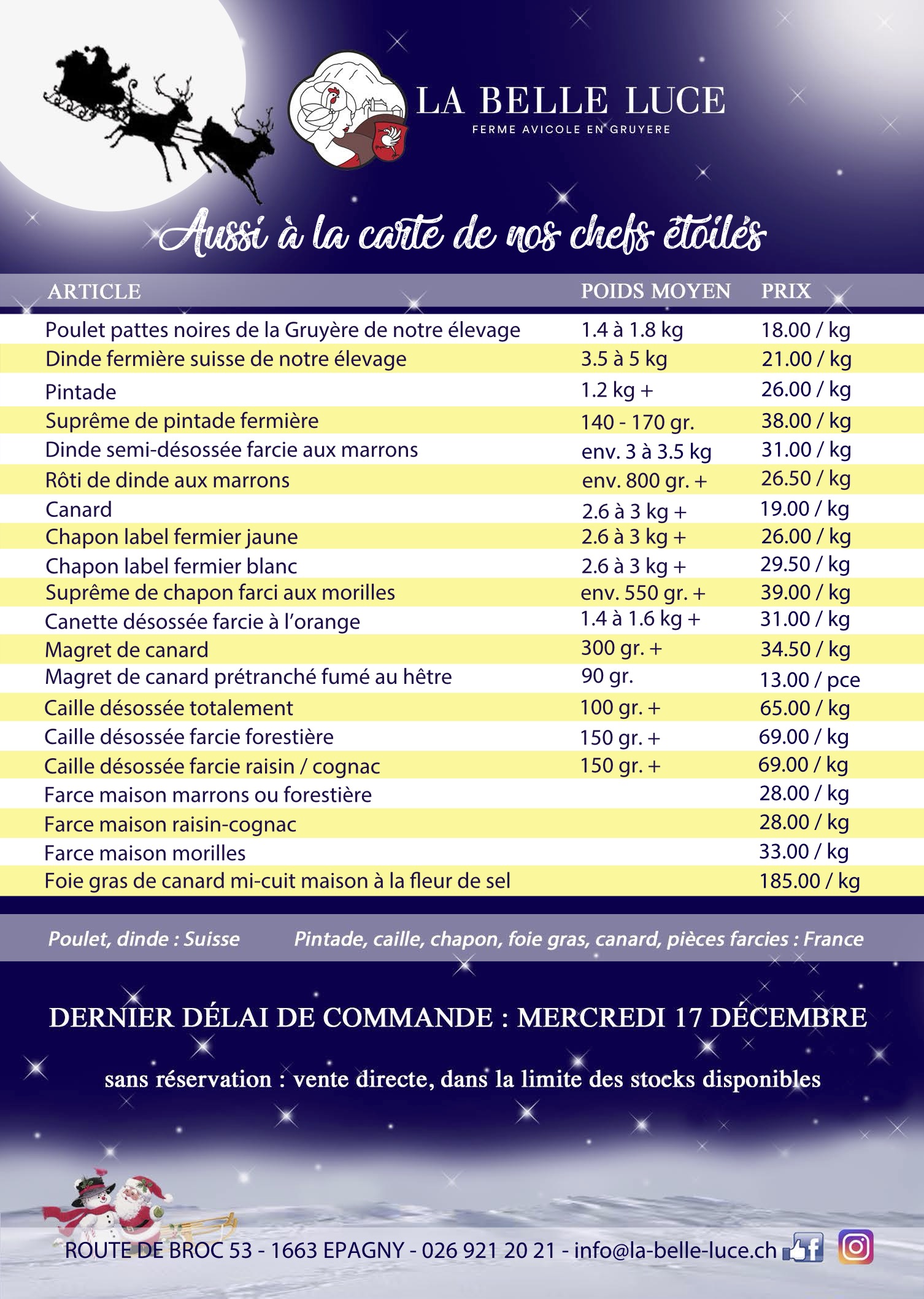 Un menu de fêtes avec les produits de la ferme avicole La Belle Luce à Epagny (FR)